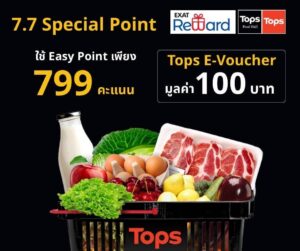 แลกรับส่วนลด Tops Supermarket มูลค่า 100 บาท ใช้เพียง 799 Easy Point