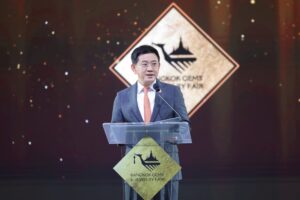 Bangkok Gems and Jewelry Fair ที่เติบโตมากว่า 4 ทศวรรษและจัดขึ้นเป็นครั้งที่ 72 ในวันที่ 9 – 13 กันยาน 2568 ถือเป็นหนึ่งในแผนงานสำคัญของกระทรวงพาณิชย์ และเป็นกลไกสำคัญในการขับเคลื่อนอุตสาหกรรม อัญมณีและเครื่องประดับของไทย ผมภูมิใจที่ในวันนี้Bangkok Gems ได้รับการยอมรับจากผู้ซื้อทั่วโลกว่าเป็น 1 ใน 4 งานแสดงสินค้าจิวเวลรี่สำคัญของโลก และเป็นงานที่เป็นหมุดหมายของผู้ซื้อและผู้ที่อยู่ในอุตสาหกรรมจากนานาประเทศ “ต้องมา” ถือเป็นบทพิสูจน์ความเชื่อมั่นที่ผู้ซื้อทั่วโลกมีต่ออุตสาหกรรมจิวเวลรี่ไทยได้เป็นอย่างดี”