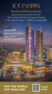 ไอคอนสยาม ตัวแทนเพียงหนึ่งเดียวจากไทย และหนึ่งในสองจากเอเชีย เข้าชิงรางวัลสุดยอดโครงการค้าปลีกของโลกในรอบ 30 ปี “Most Influential Retail Property Project of the Past 30 Years” บนเวที MAPIC Awards 2025 ชวนคนไทยร่วมสร้างประวัติศาสตร์ โหวตคว้าชัย สร้างชื่อไทยให้ดังก้องโลก