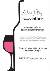 กับ “Wine Play – Viva Vintae” ณ เมโทร เลานจ์ โรงแรมอวานี รัชดา กรุงเทพฯ